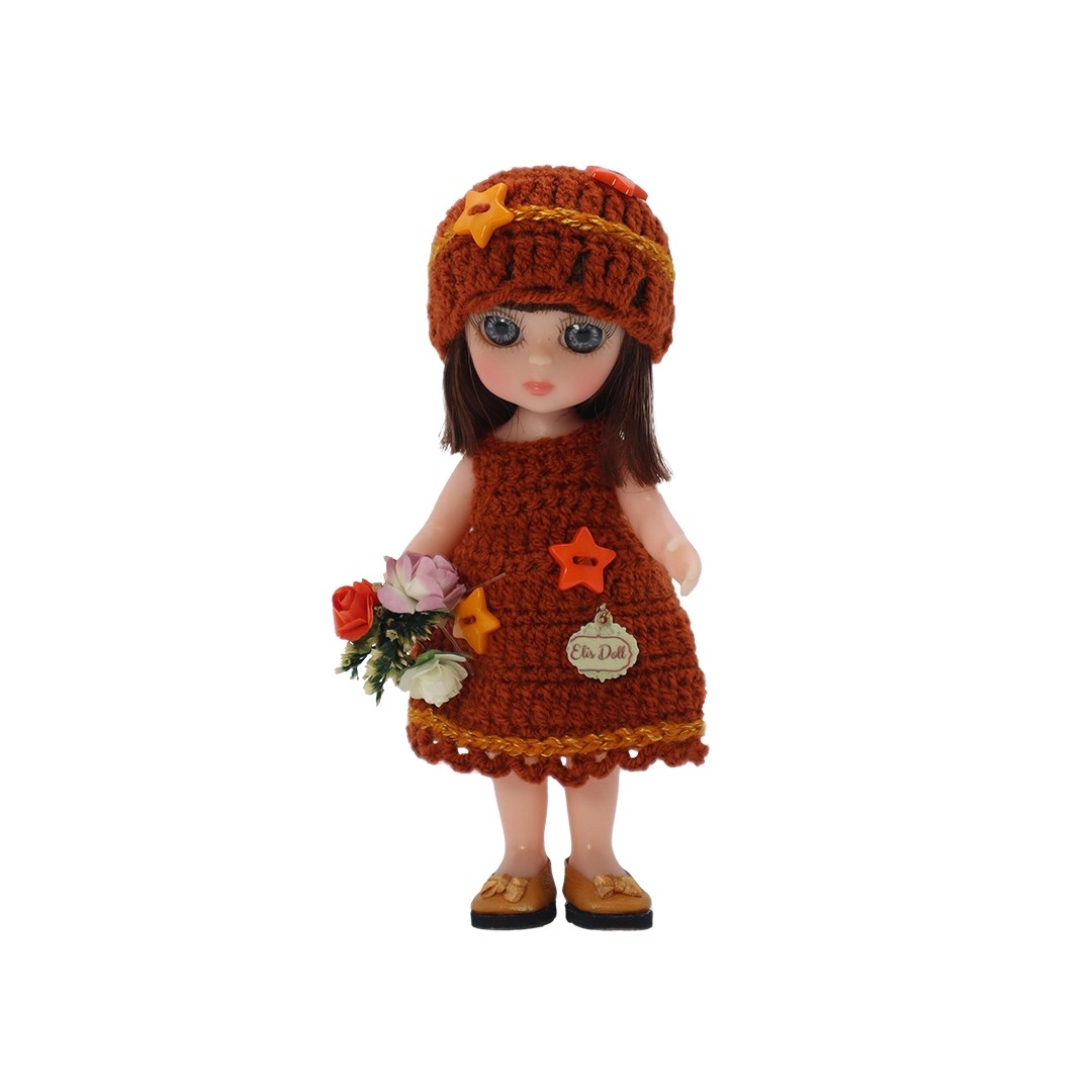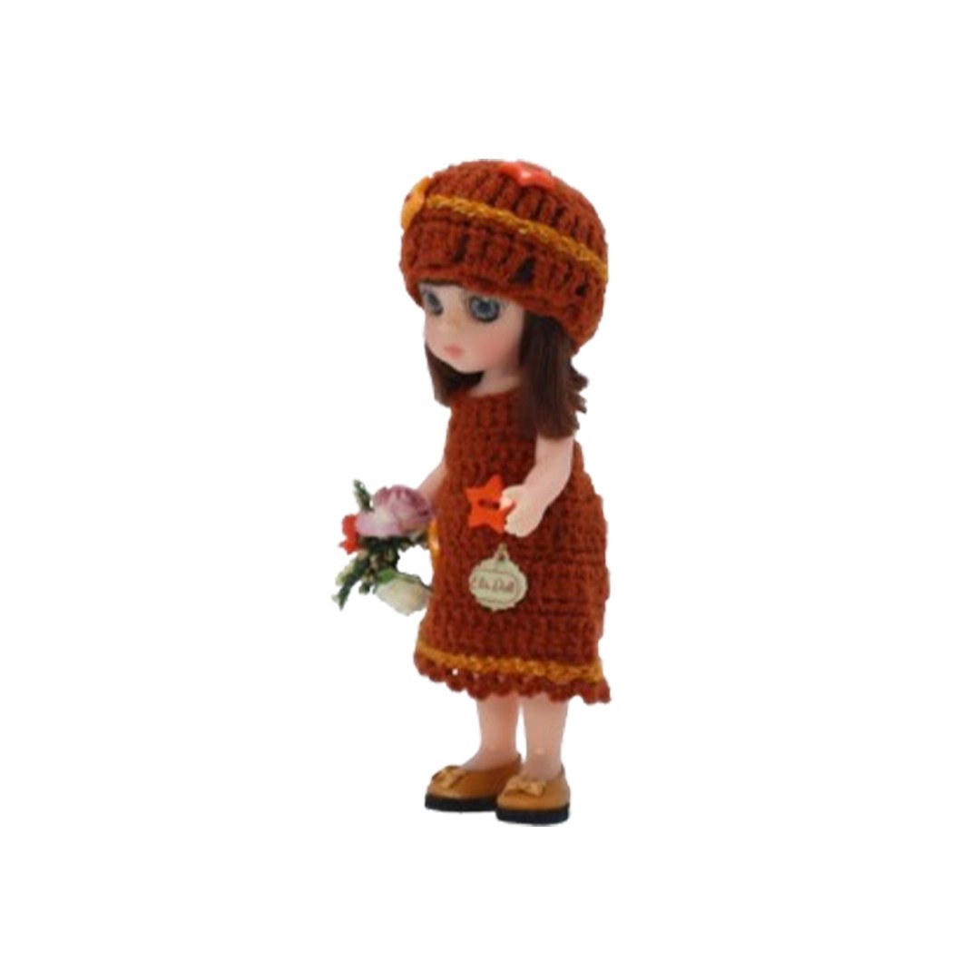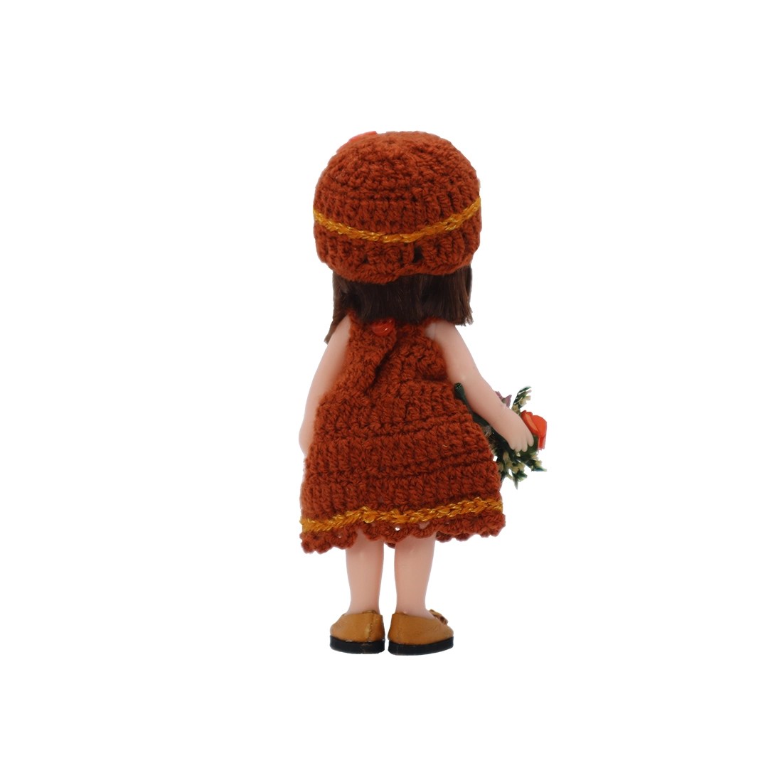 Muñeca Vestido y boina tejidos shedrom / estrellas, ramo y flats mostaza