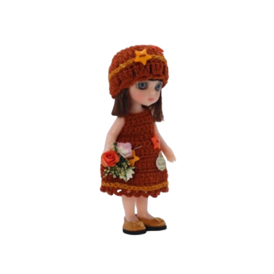 Muñeca Vestido y boina tejidos shedron / estrellas, ramo y flats mostaza