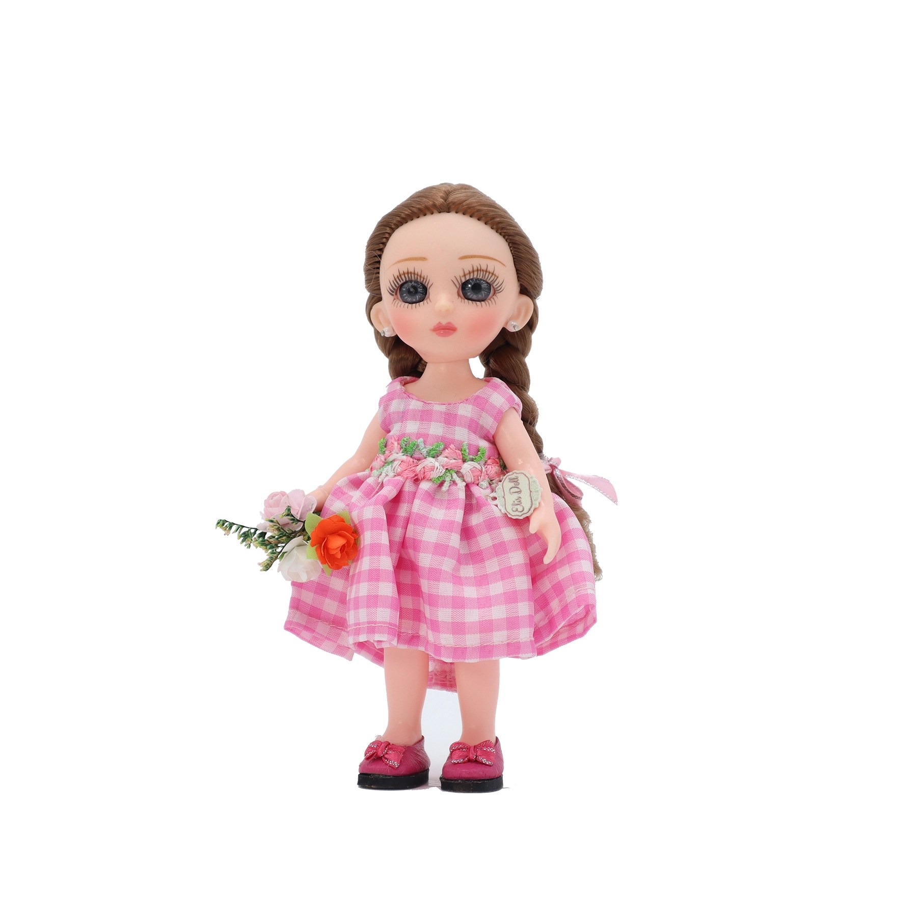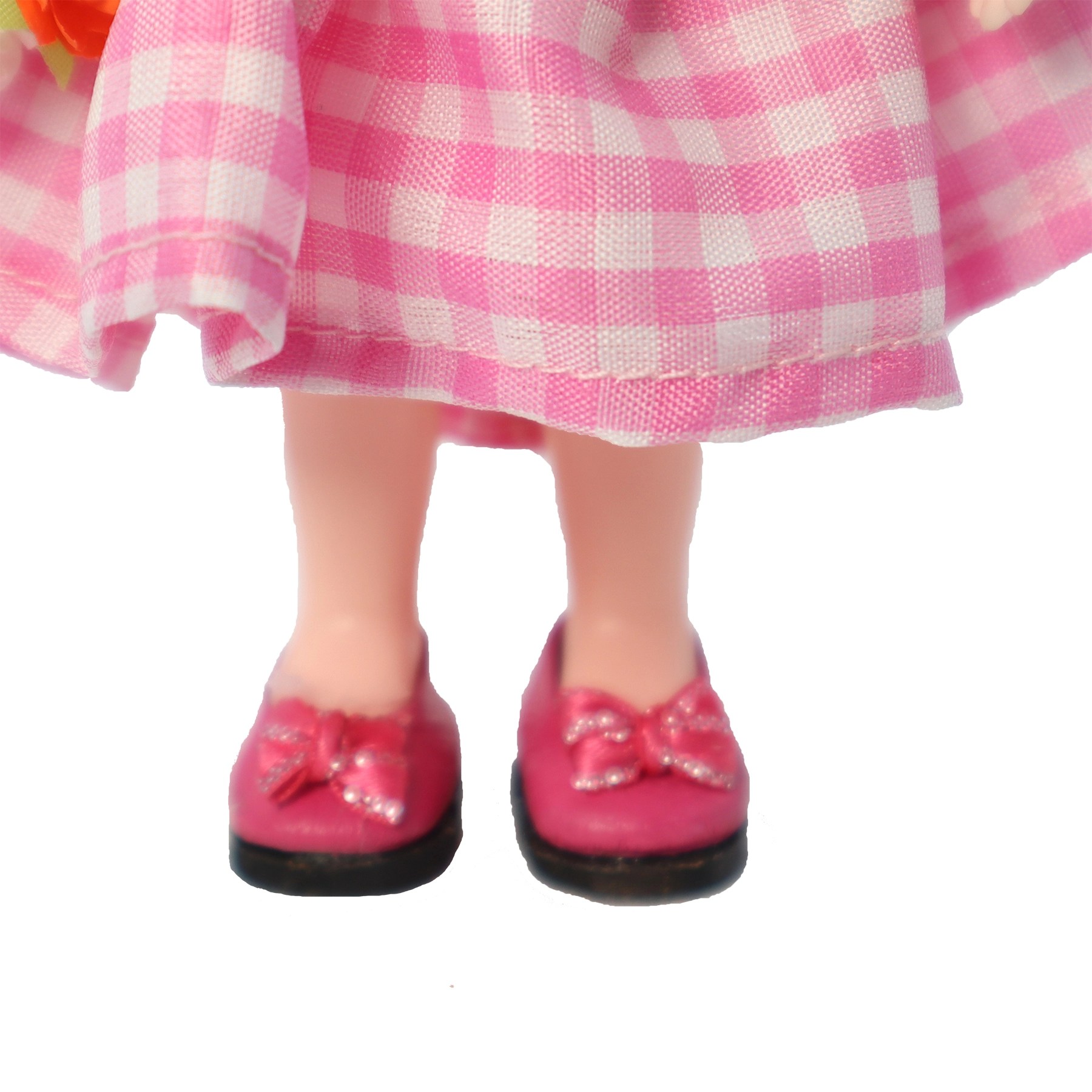Muñeca Vestido mascota rosa, encaje, ramo, moños y flats rosa